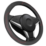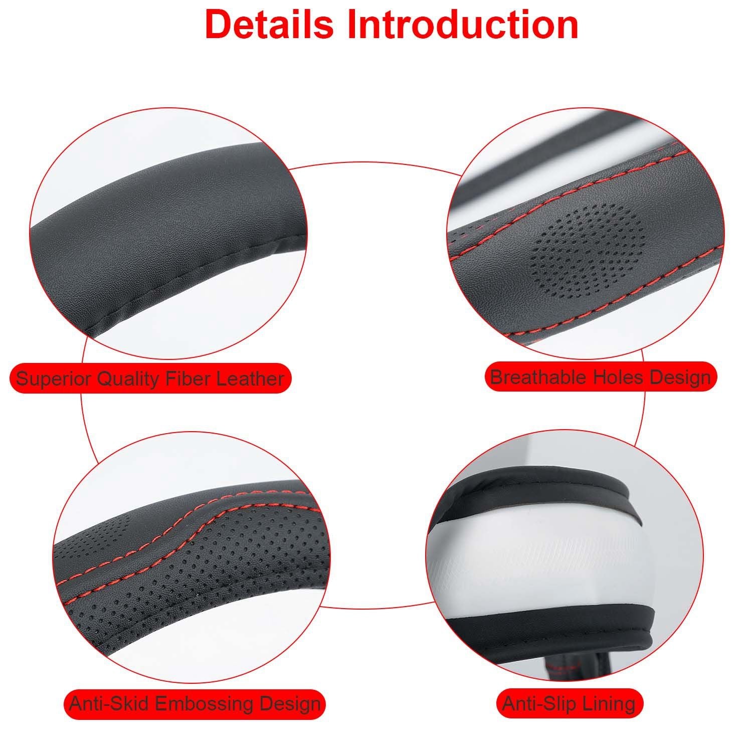 Breathable & Comfortable: Made from high-quality fiber leather, this steering wheel cover is skid-proof, stable, and heat-resistant. The design with ventilation holes allows for better heat dissipation, ensuring comfort while driving.