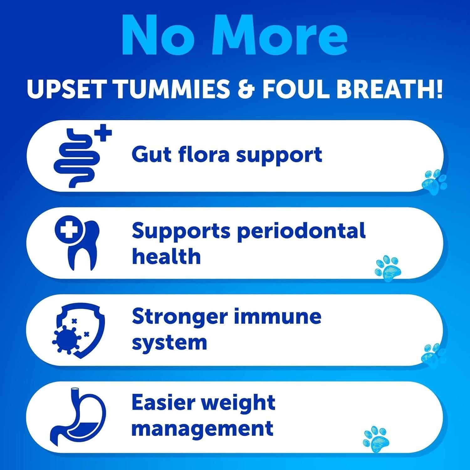 Gut Health Support: These chewable treats help with bad breath, bowel health, and digestion, so your pup stays happy and healthy.