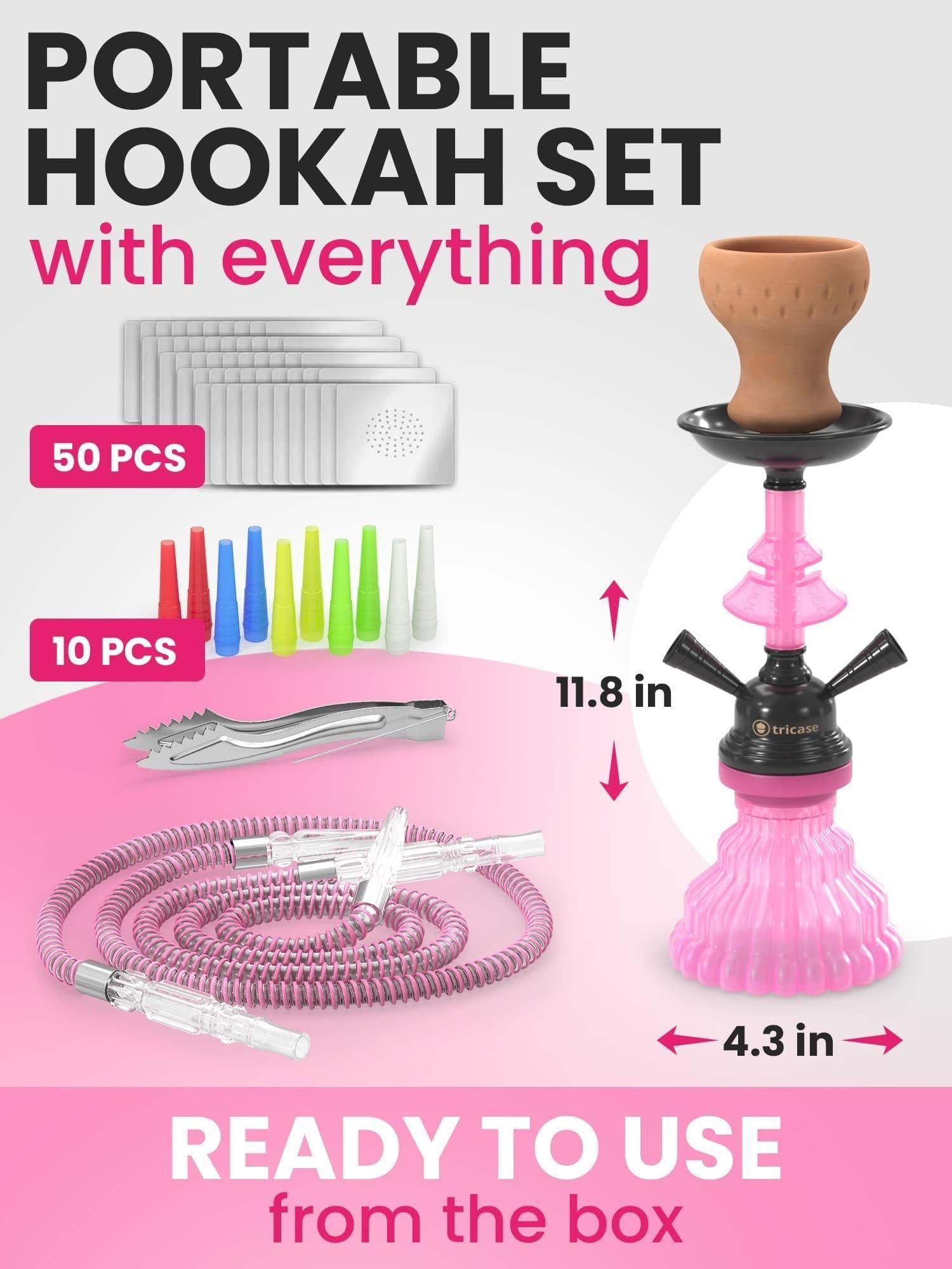 Portable & Ready to Use: This complete hookah kit is perfect for travel, camping, or relaxing at home with friends. It's small, convenient, and designed for on-the-go enjoyment.