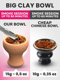 Quick & Easy Setup: Assembly takes just 3 minutes—simply add your favorite hookah tobacco and you're ready to go. The large clay bowl ensures the perfect shisha flavor.