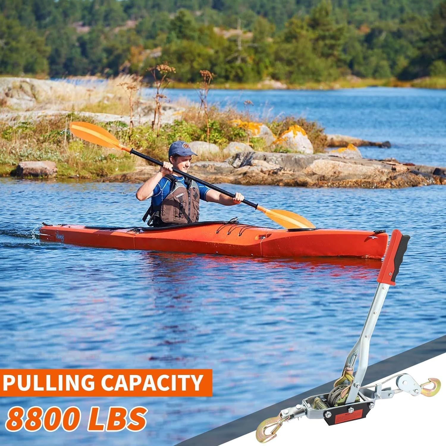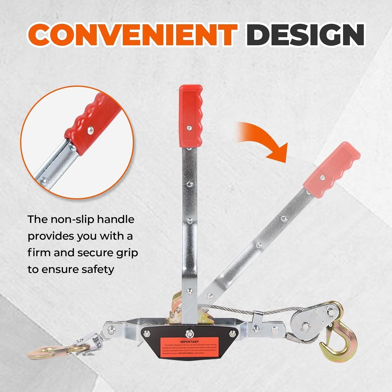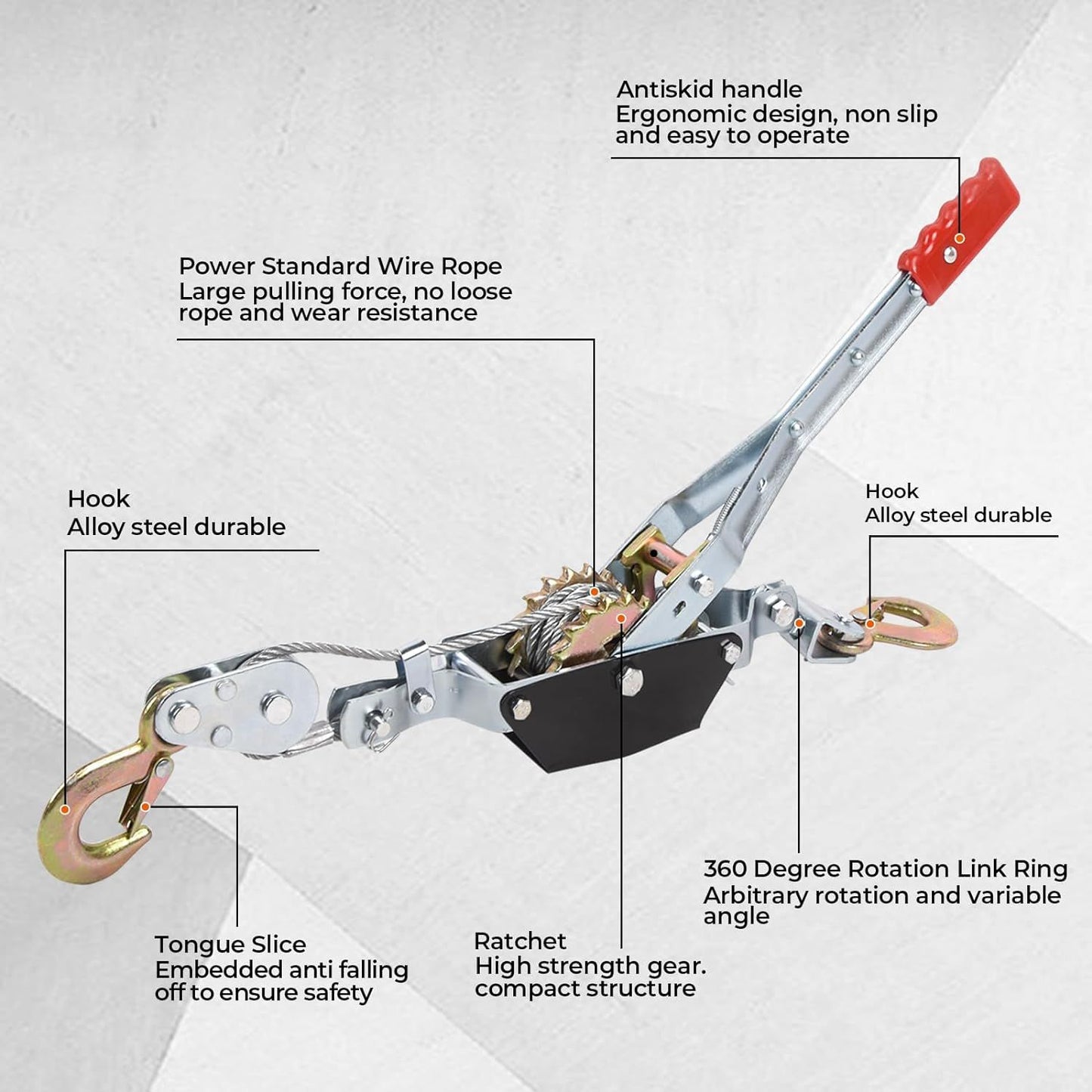 Impressive 4 Ton (8800 Lbs) Capacity: This heavy-duty come-along winch offers a robust 4T/8800 Lbs pulling capacity, perfect for tasks that require strong lifting and pulling power. Ideal for construction, automotive, and farm applications.