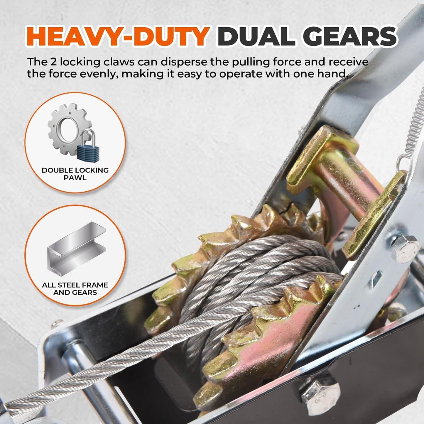 8800 Lbs Dual Gear Hand Winch Puller – 4 Ton Capacity Highlights